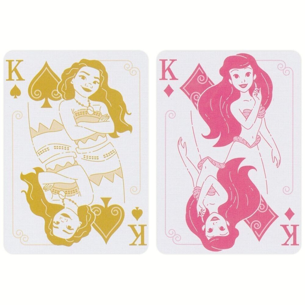 The Disney Princess franchise dreams, creates, and celebrates the most magical adventures, each woven around the relatable, empowered heroine who delights everyone and inspires people to realize their full potential. Bicycle® Disney Princess Playing Cards showcase the iconic Disney castle on the front, with gold and holographic foil accents on the tuck case. The card faces feature court cards with artwork of 12 different Disney Princesses.