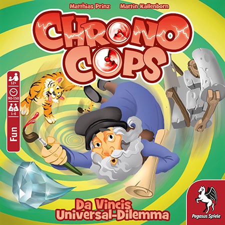 ChronoCops – Da Vincis Universal-Dilemma, ein Spiel für 1 bis 6 Spieler im Alter von 12 bis 100 Jahren.