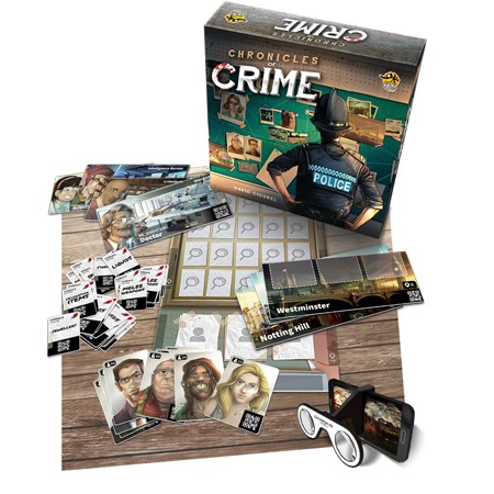 Chronicles of Crime ist ein kooperatives Ermittlungs-Spiel, das Brettspiel, eine App, und optional sogar Virtuelle Realität, miteinander in einer Geschichte verbindet. Du und deine Mitspieler lösen Kriminalfälle, indem ihr in der gesamten Stadt nach Verdächtigen, Zeugen und Hinweisen sucht. Nach den Hinweisen haltet ihr dabei in 3D-Szenen Ausschau!