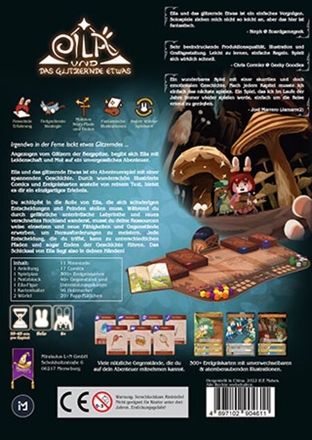 Eila und das glitzernde Etwas ist ein mehrmals spielbares Abenteuer von Jeffrey CCH, bei dem ihr euren eigenen Weg wählt, mit einzigartigen Mechanismen und bezaubernden Illustrationen von Roxy Dai. Die fesselnde und interaktive Geschichte wartet nur darauf, von euch entdeckt zu werden! Das Spiel kann solo und kooperativ gespielt werden und bietet einen hohen Wiederspielwert.
