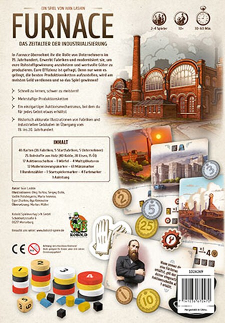 Furnace - Das Zeitalter der Industrialisierung, ein Spiel für 2 bis 4 Spieler im Alter von 10 bis 100 Jahren.
