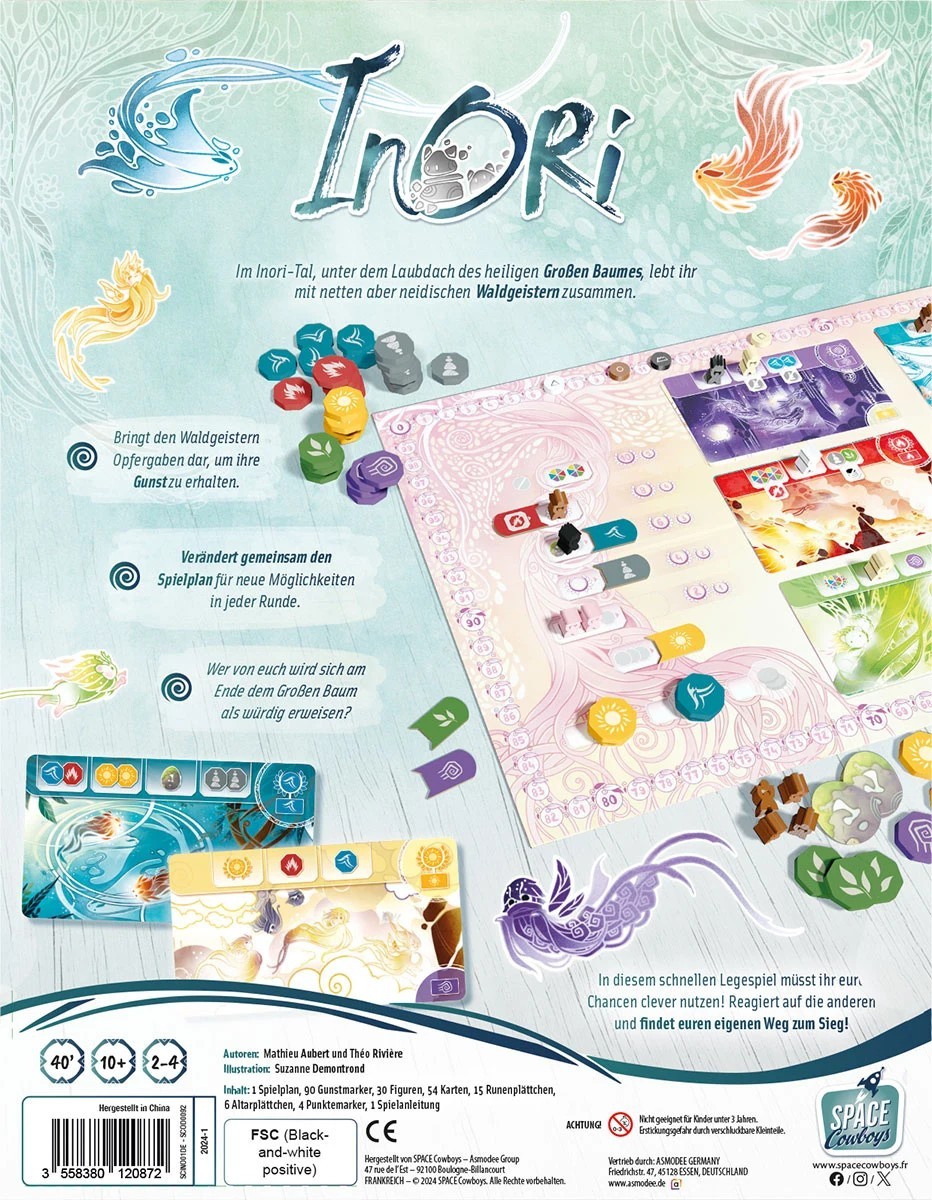 Im Inori-Tal, unter dem Laubdach des heiligen Großen Baumes, lebt ihr mit netten aber neidischen Waldgeistern zusammen. In dem Familienspiel Inori bringt ihr jedes Jahr den Waldgeistern Opfergaben dar, um ihre Gunst zu erhalten, und errichtet Altare zu Ehren des Großen Baumes. In jeder Runde verändert ihr gemeinsam den Spielplan für neue Möglichkeiten. Wer am Ende die meisten Punkte hat, erweist sich dem Großen Baum als würdig und gewinnt!