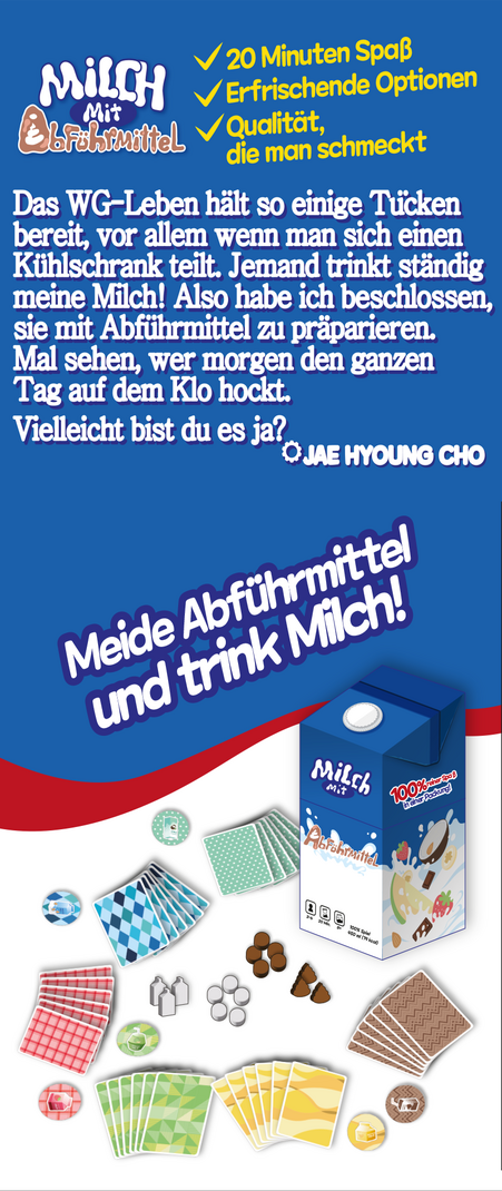 Milch mit Abführmittel, ein Spiel für 3 bis 6 Spieler im Alter von 8 bis 100 Jahren.