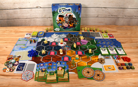 1 bis 6 wagemutige Entdecker ab 8 Jahren wetteifern in "My Little Scythe" um Trophäen. Dazu liefert ihr euch Kuchenschlachten um leckere Äpfel und magische Edelsteine, helft einander, backt Kuchen und vieles mehr! Die Autoren des Spiels sind Hoby Chou und seine Tochter Vienna. Gemeinsam haben sie ein sehr zugängliches Spiel geschaffen, das der ideale Einstieg in komplexere Kennerspiele ist.