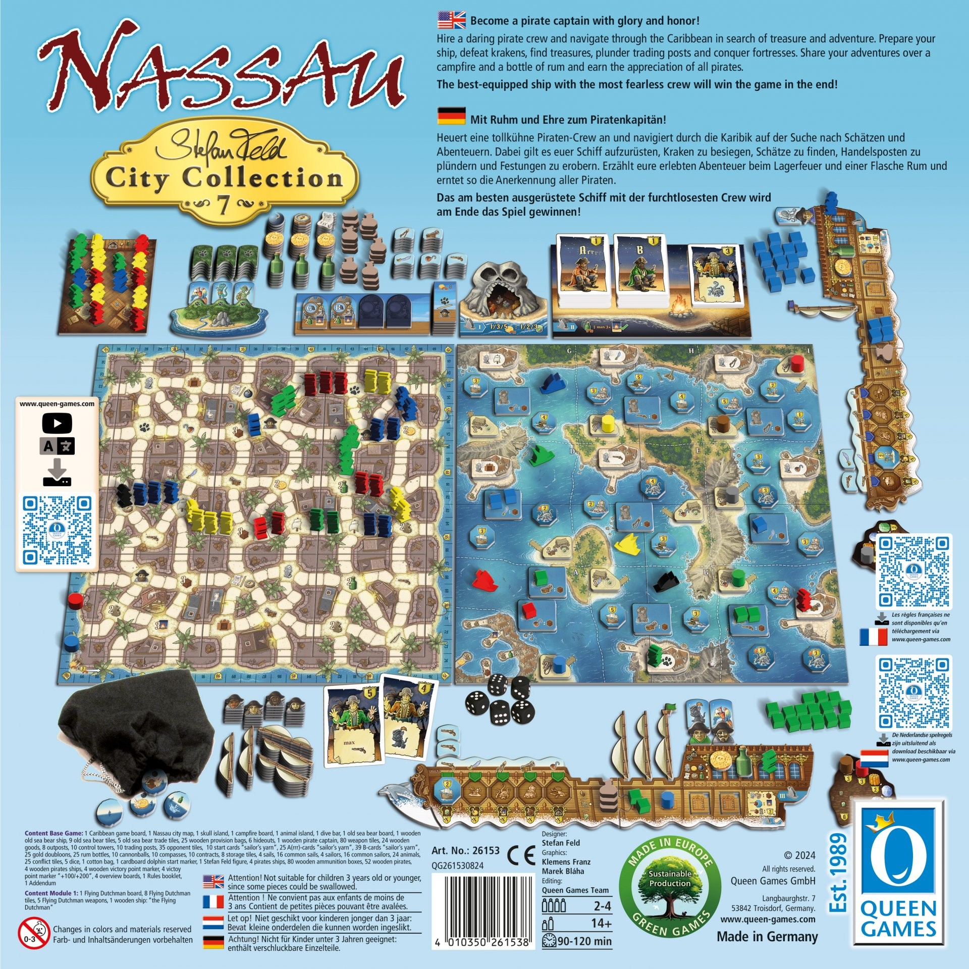 Heuert eine tollkühne Piraten-Crew an und navigiert durch die Karibik auf der Suche nach Schätzen und Abenteuern. Dabei gilt es euer Schiff aufzurüsten, Kraken zu besiegen, Schätze zu finden, Handelsposten zu plündern und Festungen zu erobern. Erzählt eure erlebten Abenteuer beim Lagerfeuer und einer Flasche Rum und erntet so die Anerkennung aller Piraten.