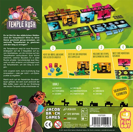 Temple Rush, ein Spiel für 1 bis 4 Spieler im Alter von 8 bis 100 Jahren.