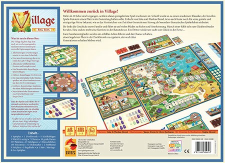 Die Village Big Box enthält alle bisherigen Erweiterungen, alle Promos und eine komplett neue Erweiterung. Außerdem gibt es einen neuen Solo-Modus, ein neues Design und viele aufgewertete Spielelemente.